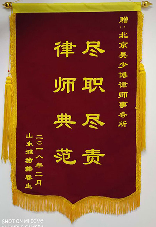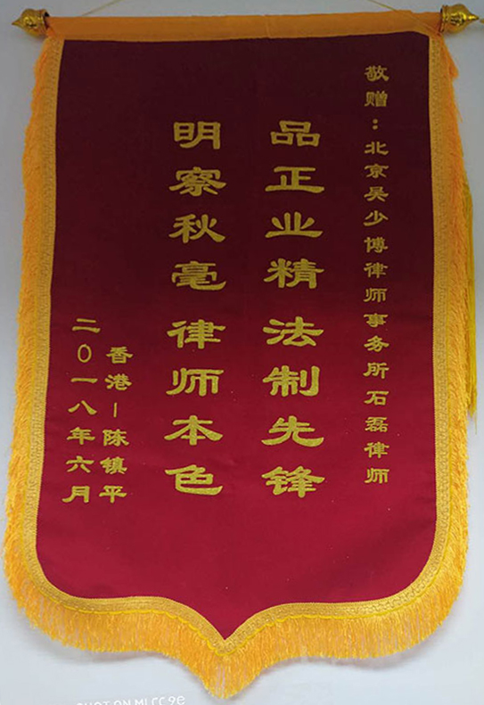 • 張帆收到石家莊客戶贈送的錦旗
