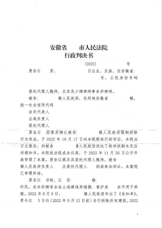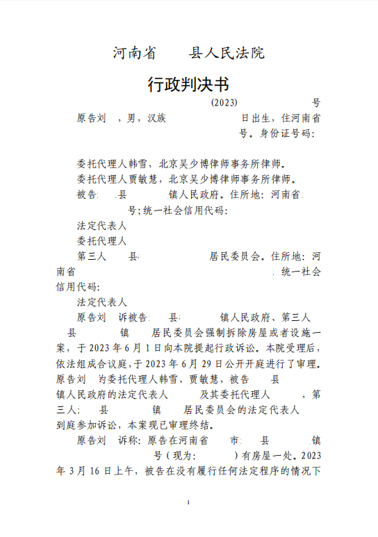 本案代理律師 北京吳少博律師事務所郭昌通 案情摘要: 無證房居住多年未辦證 被確認為違建